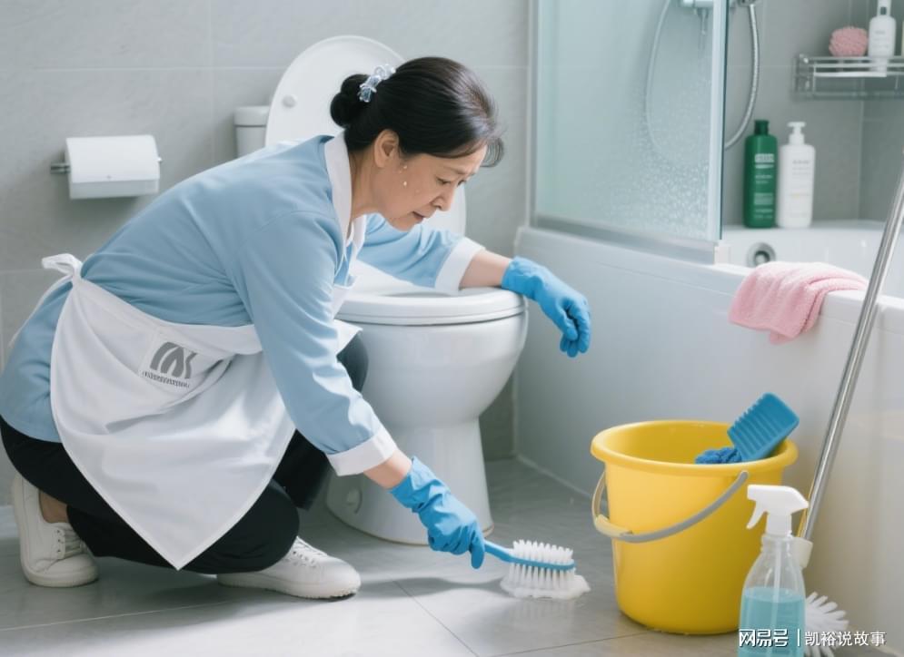 下午两点半,苏慧兰开始清理卫生间。这是最累的活,需要刷马桶,洗浴缸,清理下水道。她蹲在地上,用刷子仔细地刷着每一个角落。