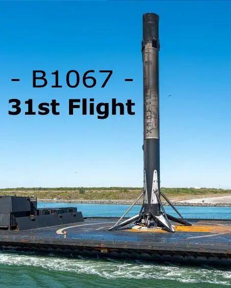 升空约8分20秒后,B1067.31助推器第31次成功回收,稳稳降落在距发射场约595公里海域的ASOG无人海上平台上。这是SpaceX第520次成功回收火箭,也是ASOG海上平台第129次喜迎一级火箭归来。