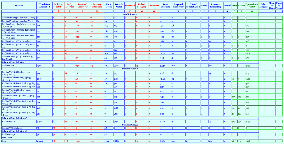 Jonathan's Space Pages Starlink Statistics(planet4589.org)