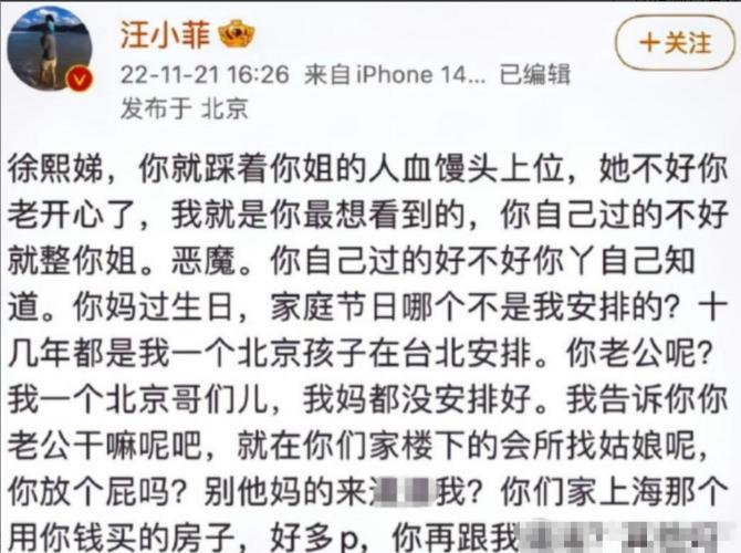更重要的是,汪小菲的回应恰好戳中了小S的要害,一个真正思念姐姐的人,怎么会对姐姐留下的两个孩子不闻不问?