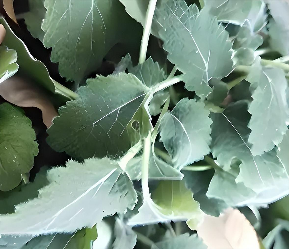 只见视频中的“白菜”并不像我们常见常吃的大白菜,而是几片绿油油的大叶子,上面长着白色的毛毛,边缘还带着小齿。