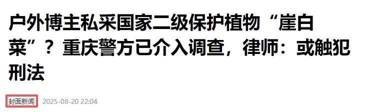 封面新闻《户外博主私采国家二级保护植物“崖白菜”?重庆警方已介入调查,律师:或触犯刑法》2025-08-20