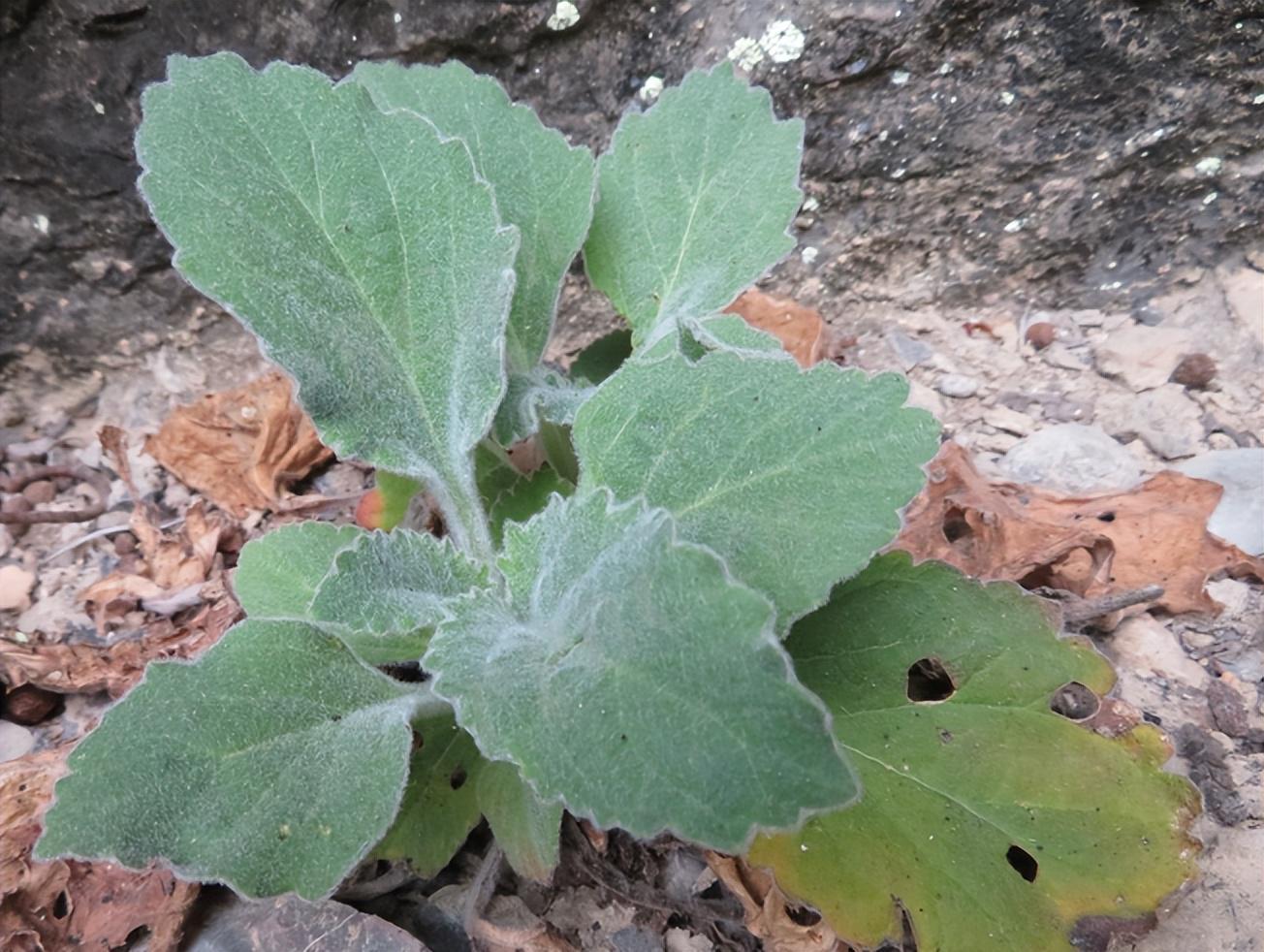 崖白菜个头不高,一般也就几十厘米,整个植株都密密实实地被白色绵毛包裹着。