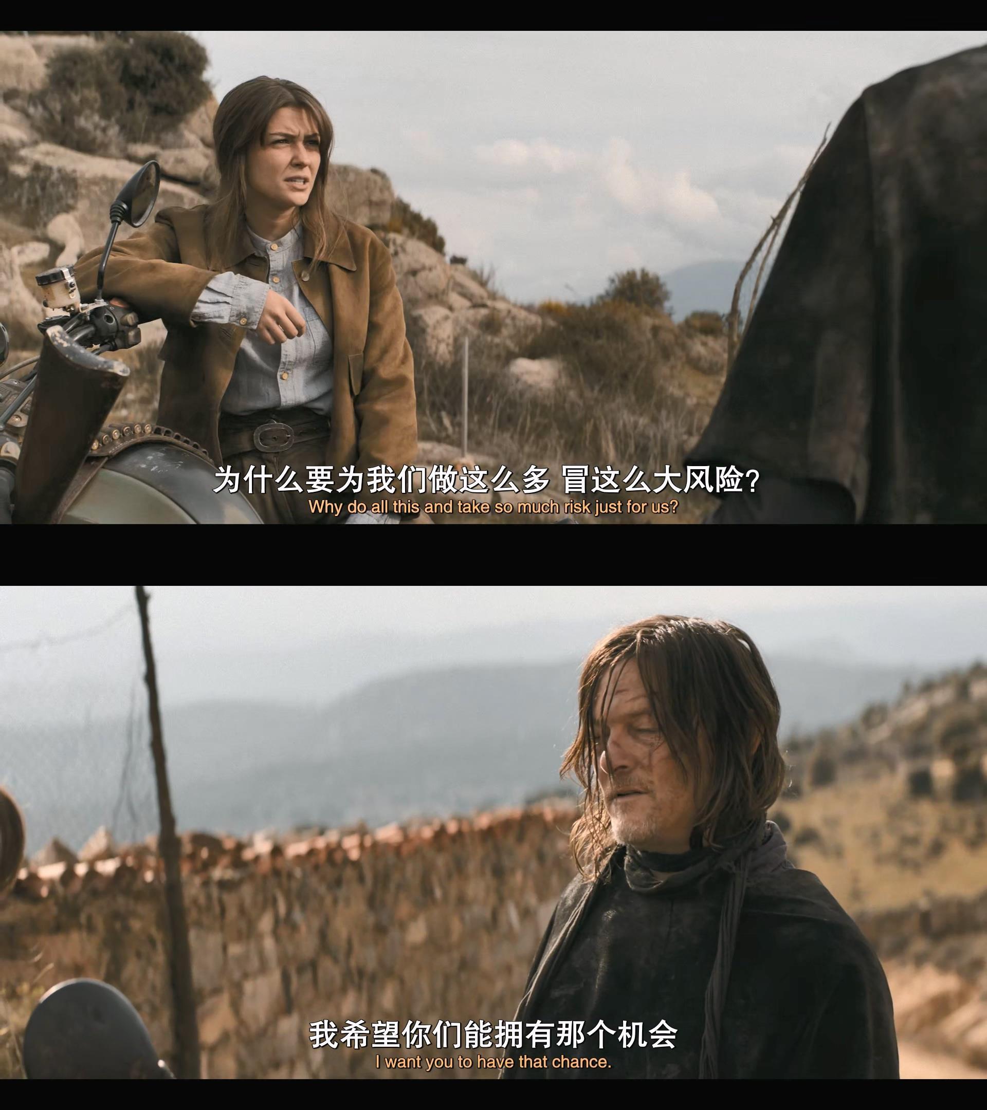 话说回来,虽然这集的节奏太快、细节太糙,但基本剧情脉络都还是在的,总算有头有尾,特别是达里尔对卡萝尔的真情流露,也进一步补全了他的人生。