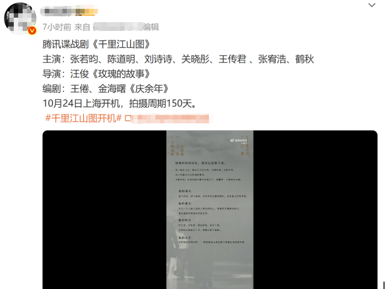 只是没想到上述两部剧还没定档呢,眼下又有一部新作传来好消息,那就是《千里江山图》。
