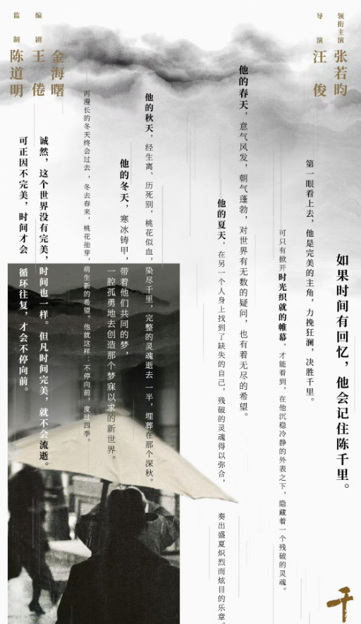 而男主陈千里(张若昀饰)的任务就是揪出叛变者,肃清队伍,并且秘密执行一项代号为“千里江山图”的任务。