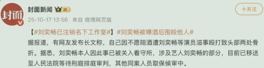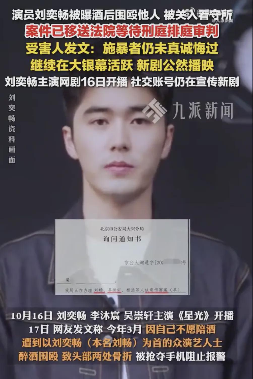 3月施暴,10月16号,刘奕畅主演的网剧《星光》还在播。