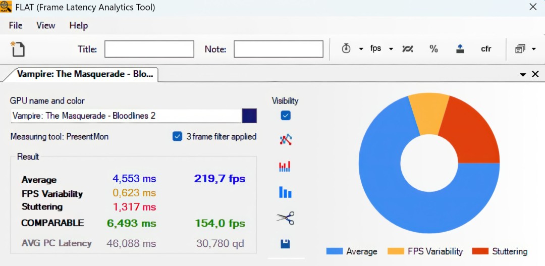 通过NVIDIA FrameView和FLAT工具对开放世界场景进行分析后,结果令人震惊。帧时间图显示,峰值竟高达175毫秒。即便排除这一异常点,在自定义基准测试过程中,也多次出现超过40毫秒的帧时间尖峰,导致帧率瞬间降至25帧每秒。尽管这些卡顿只是短暂的,但已足以严重影响游戏体验。