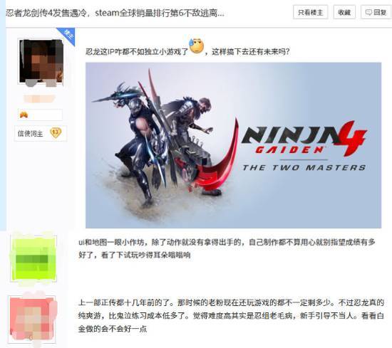 时隔近13年,《忍者龙剑传4》终于与玩家见面。尽管系列粉丝多年来不断呼吁其回归,但新作发售后的市场表现却似乎并未达到预期热度。