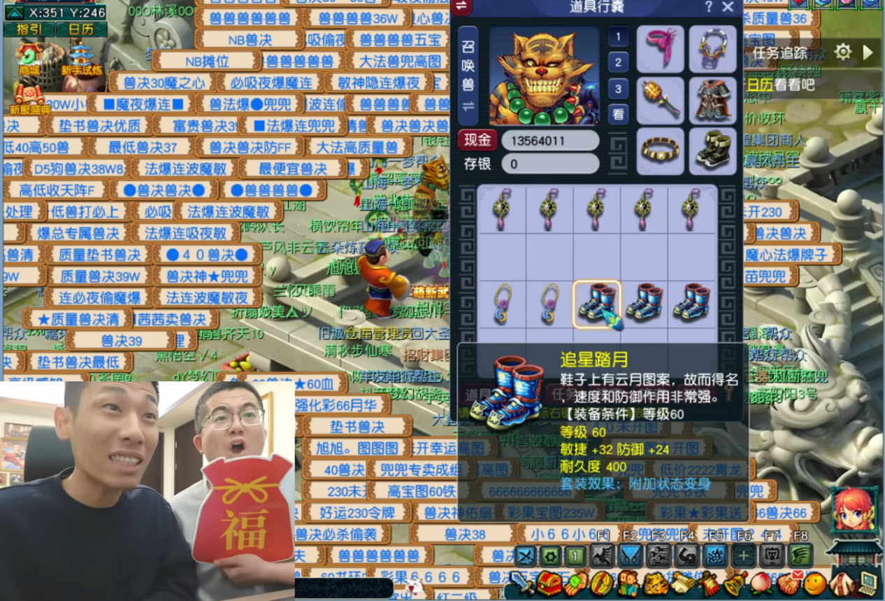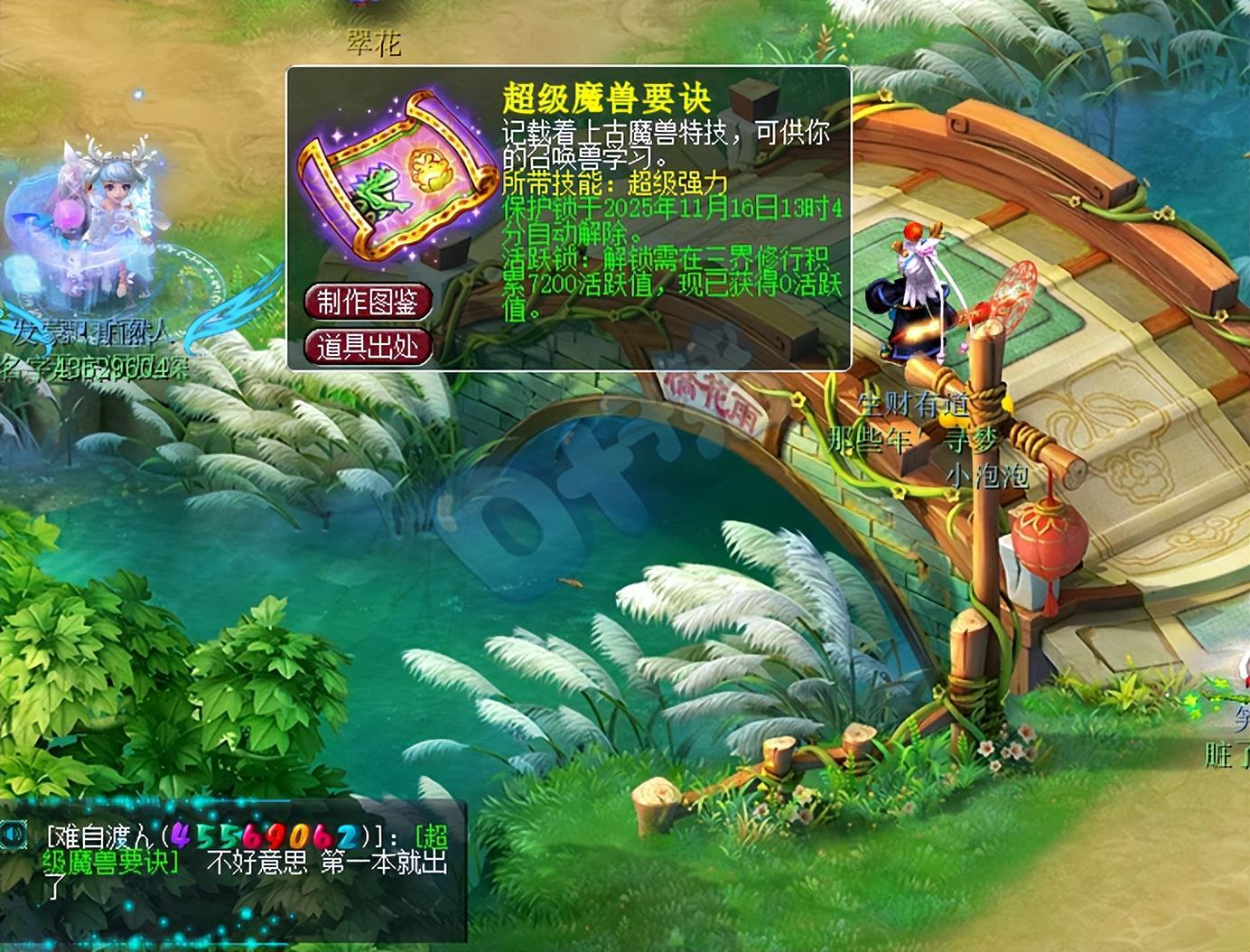 【灵隐寺】服务器129级五开玩家在云游道人活动中创造奇迹,首次使用感应魔石即获得全区首本超级强力兽诀。据区内商人评估,该道具当前市场报价可达五位数级别。