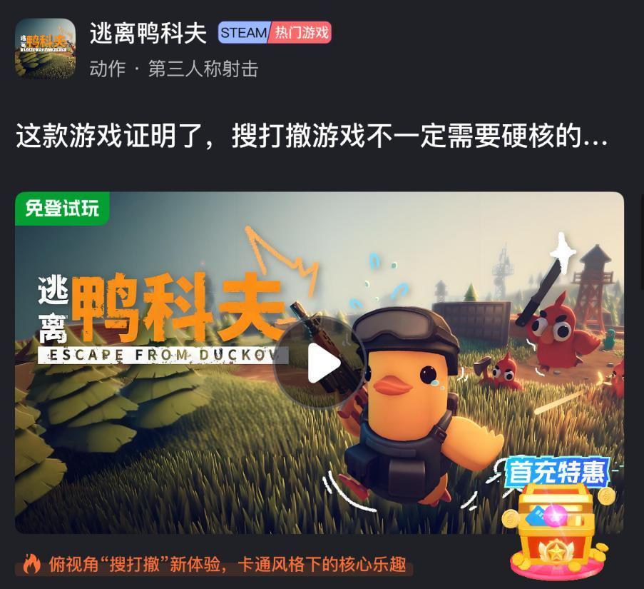 当第一次踏入《逃离鸭科夫》的零号区域时,我被满地的罐头和零件弄得一头雾水。这颗生锈的螺丝钉和半瓶苏打水,究竟哪个更有价值?直到在撤离点门口不幸“阵亡”,我才恍然大悟,原来那些随手丢弃的“小垃圾”,竟是能换取全套神装的硬通货。这款被玩家亲切称为“鸭子版塔科夫”的国产游戏,上线首周便狂销百万份,Steam好评率稳稳保持在96%以上,峰值时更有20多万玩家同时在线。就连我这种平时对硬核射击游戏不太感冒的人,也成了“熬夜捡垃圾专业户”。