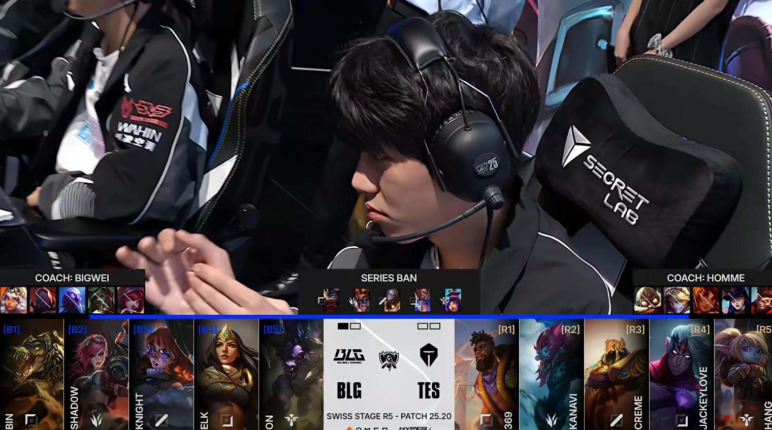 2025英雄联盟全球总决赛瑞士轮第五轮2-2组焦点战中,TES以2-1的总比分淘汰BLG,成功晋级八强。本场系列赛中,TES核心选手阿水(JackeyLove)凭借飞机(库奇)的惊艳表现,成为队伍逆转取胜的关键。