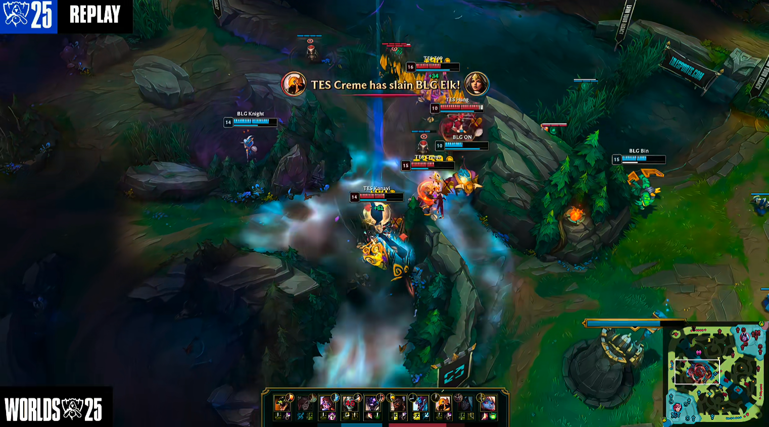 中期,BLG通过ON妮蔻的闪现大招开团,连续击杀TES双人路,控下峡谷先锋并推掉上路一塔。尽管TES在12分钟抓死阿水后控下第二条小龙,但BLG凭借吉格斯的快速推塔能力,在21分钟通过ON妮蔻绕后开团团灭TES,随后拿下大龙并破掉三路高地,最终赢下首局。