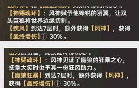 作为当前版本输出增益最高的神赐魂环,风笑天魂环在「疾风」或「魔狼狂暴」状态叠满7层时可提供30%最终伤害加成。但实测数据显示: