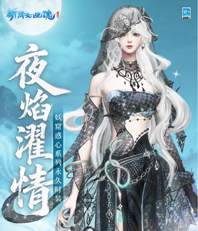 如果你不爱打打杀杀,那这套反派主题新时装绝对会让你眼前一亮。女款时装将蛇精的妖异美展现得淋漓尽致,半透头纱遮着半边脸,上衣和长裙上爬满银闪闪的鳞纹,走一步裙摆就跟着晃,搭配卷曲白发,活脱脱一个“冷艳蛇蝎美人”;男款则更显霸气,蓝黑色交领长袍衬得人沉稳又神秘,肩甲设计成蝎钳张合的模样,衣袂翻飞时,仿佛下一秒就要亮出蝎尾钩子,冷冽又带感。