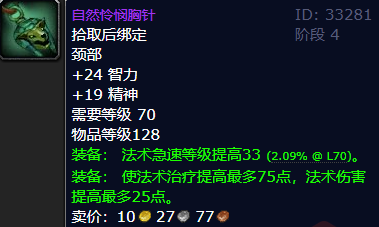 作为雄鹰化身埃基尔松掉落的项链,自然怜悯胸针凭借33点法术急速等级的恐怖加成,直接登顶超模项链榜单。虽然定位是治疗装备,但实际副本中常出现术士玩家与治疗职业激烈竞拍的奇观。据玩家反馈,怀旧服中甚至出现过500金币捡漏的幸运时刻,而笔者亲历的最高竞价达到5000金币,最终只能含泪啃起排骨。