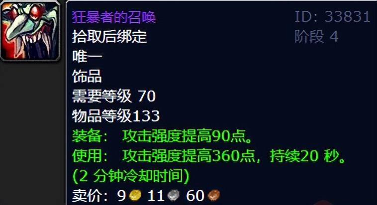 这款由妖术领主玛拉卡斯掉落的饰品,与古尔丹之颅组成了TBC版本最经典的法系爆发组合。可控高额急速与强势爆发的完美搭配,让持有者轻松制霸输出榜单。还记得当年双盒子精傍身的日子吗?这对黄金搭档至今仍是高端法系玩家的标配选择。