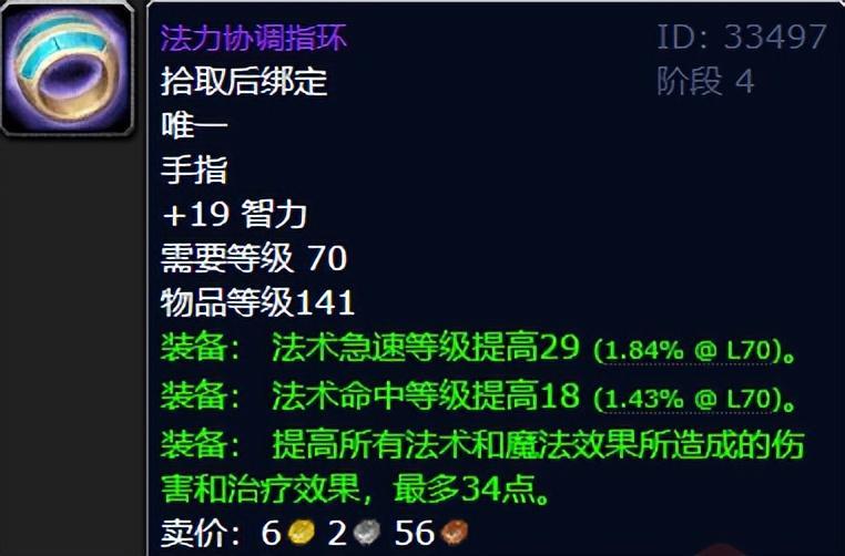 虽然装备图标略显朴素,但法力协调指环的18点法术命中等级加成堪称后期配装神器。对于追求完美命中的术士玩家,这件装备能提供最高容错率的配装方案。更令人惊喜的是其适中的掉率,运气好的玩家甚至能以几百金币的价格收入囊中。