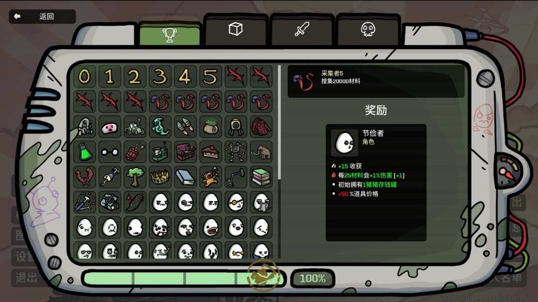更新还包含了物品图鉴系统,该图鉴主要包含两大块内容:一是玩家的游玩进度,二是道具、武器和敌人的信息。这基本上就是一个能记录玩家土豆生涯的“百度百科”,让玩家可以随时回顾自己的游戏历程。
