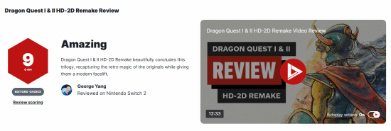 近日,备受期待的《勇者斗恶龙1+2 HD-2D重制版》媒体口碑正式解禁,权威游戏评测媒体IGN给出了高达9分的惊艳评价,再次证明了这款经典RPG系列重制版的非凡魅力。