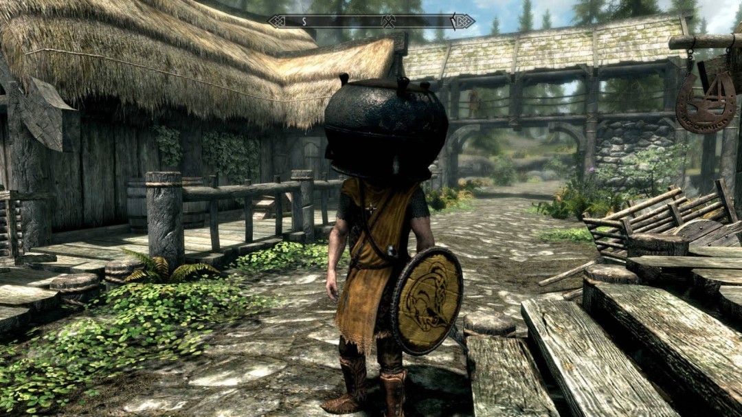 Nesmith在FRVR的专访中详细解释了这一现象级玩法的起源。在《上古卷轴5》的原始设定中,当玩家被NPC注视时拿取他人财物会被判定为盗窃行为并触发罚金机制。但游戏独特的物理系统允许玩家自由抓取和移动场景中的各种物体,这为意外玩法埋下了伏笔——玩家发现通过将铁锅等容器强行扣在NPC头上遮挡视线,就能在对方毫无察觉的情况下实施盗窃。
