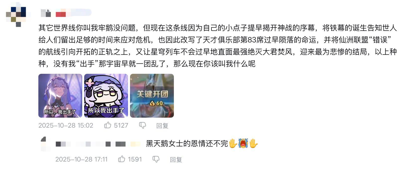 这三条IF线结局一个比一个惊心动魄,看完PV后,玩家纷纷感叹幸好选择了翁法罗斯,避免了最坏的情况。不少人还整活向黑天鹅道歉,现在她的实力与价值已无人质疑。