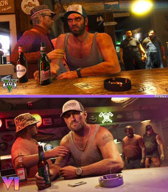 近日,海外玩家社区Reddit上出现了一则令人惊叹的创作:用户@Noru122通过编辑经典游戏《三男一狗》(GTA5)成功复现了《GTA6》的官方宣传图片。通过对比截图,玩家们清晰看到了R星(Rockstar Games)在画面技术上的显著进步。