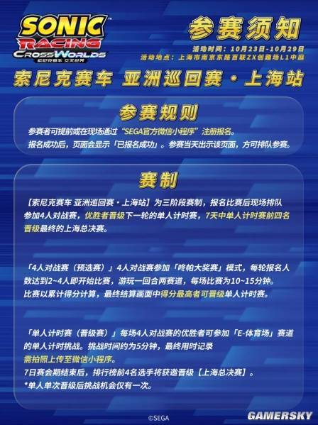 当然,上海站仅仅是此次巡回赛中国线下站的开幕。在日后,这一活动还将陆续在北京、广州、成都等地举办,让更多的玩家可以参与到这场赛车盛事中,近距离体验“索尼克速度”带来的速度与激情,借此结交更多同好。而这也同《索尼克赛车交叉世界》的热闹派对大乱斗气氛遥相呼应。