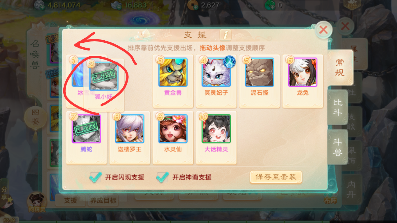 召唤兽支援系统新增拖动排序功能!玩家现在可以通过拖动头像调整支援顺序,排序靠前的召唤兽将优先参与战斗。调整完成后记得保存到套装配置,让战斗策略更加灵活。