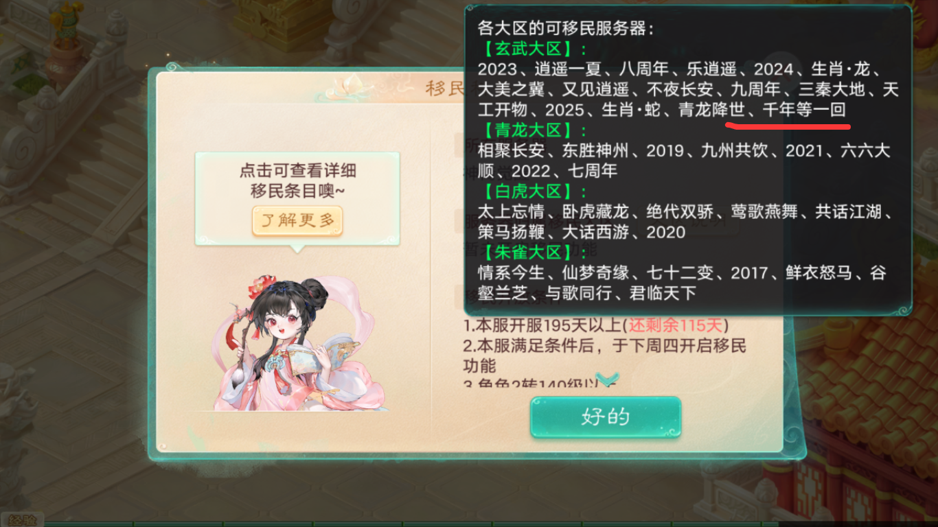 千年等一回服务器正式开放移民功能,所有大区的移民名额同步更新。名额有限先到先得,想要转战人气大区的玩家请抓紧时间办理移民手续。