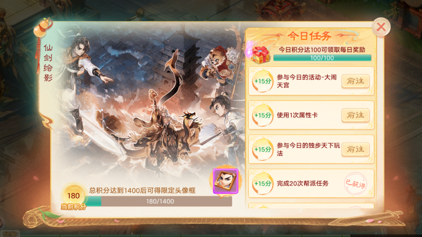 叶子猪独家发现联动隐藏彩蛋:前往长安城与逍遥剑侠/拜月教主对话,即可领取《仙剑联动》高清壁纸!回流玩家更有专属福利,与回流大使对话可获得见面礼,每日完成日常任务积累仙剑绘影积分,满1400分即可兑换限定「逍遥仙葫」头像框。