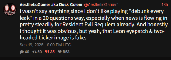 就在粉丝期待值达到顶峰时,一张所谓"里昂《生化危机9》最终建模"的图片在网络疯传。图中角色佩戴标志性皮夹克,但左眼新增的战术眼罩设计引发争议。Dusk Golem在推特互动中直接驳斥该图片真实性:"现在关于《生化危机9》的假情报太多了。那个戴眼罩的里昂图——但凡玩过前作的人都能看出破绽。"其言论迅速引发连锁反应,多家游戏媒体跟进分析图片中的光照错误、材质瑕疵等技术问题。