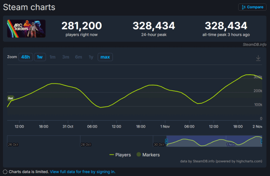 而根据权威数据网站SteamDB的最新消息,《Arc Raiders》的最高在线人数已经成功突破32万,并且这一数字仍在持续增长中,显示出游戏持续吸引新玩家和保持老玩家活跃度的强大能力。