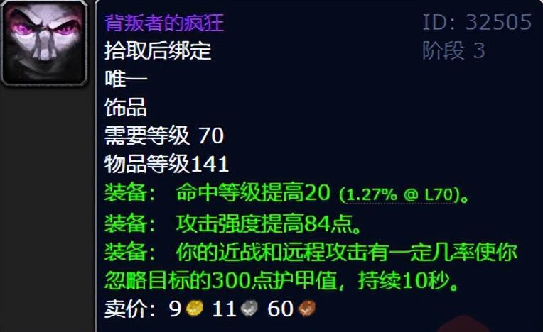 黑暗神殿的F4伊利达雷议会掉落的背叛者的疯狂,是一款容错率极高的破甲饰品。常驻攻强之外,还提供了命中和被动破甲提升,对于那些阶段性缺命中又想要高攻强的玩家来说,这款饰品无疑是极品中的极品。那么,问题来了,你觉得背叛者的疯狂最适合哪个职业呢?