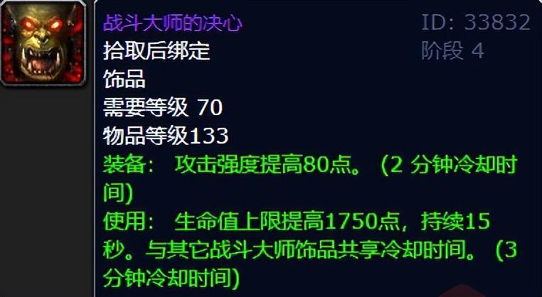 最后,我们要介绍的是战斗大师的决心。这款饰品不仅是物理系职业PVP的专属,也是熊T后期不错的选择之一。有了它,仇恨稳定,15秒的抬血线更是非常实用。那么,在你心目中,TBC版本常驻攻强的天花板级饰品又是哪一款呢?