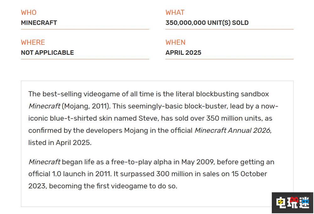 吉尼斯世界纪录认证的这一数据,距离2023年10月公布的3亿份销量仅过去18个月。如此惊人的增长速度,既得益于游戏持续更新的丰富内容,也离不开全球玩家社区的蓬勃发展。自2010年6月30日推出Alpha版本以来,《我的世界》已走过15个年头,2014年微软以25亿美元收购开发商Mojang后,仍保持每年推出重大更新的频率。