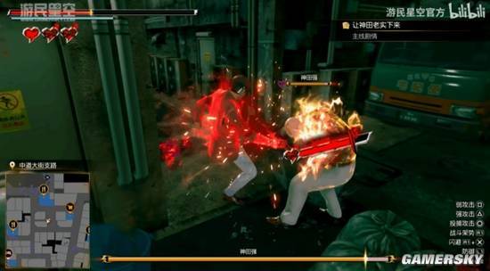 而在激烈的战斗中,峰义孝还会同时积攒“暗之心”。当攒满一颗后,他便可以进入“暗觉醒”状态。攒得越多,“暗觉醒”状态就会变得更加强大。在“暗觉醒”状态下,玩家的战斗力将会得到空前的提升,人物的整体攻速与战斗力都会再上一个档次。而“暗觉醒”下的重击更是压迫感十足,极致的冷血暴力不仅让战斗爽快连连,也足以让人对这位日后桐生一马的强大敌人感到一丝敬畏与期待。
