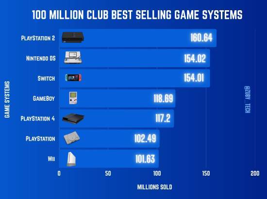 根据榜单显示,索尼PS2以1.6064亿台的销量稳居历史销量冠军宝座,成为全球唯一销量突破1.6亿台的主机。具体排名如下: