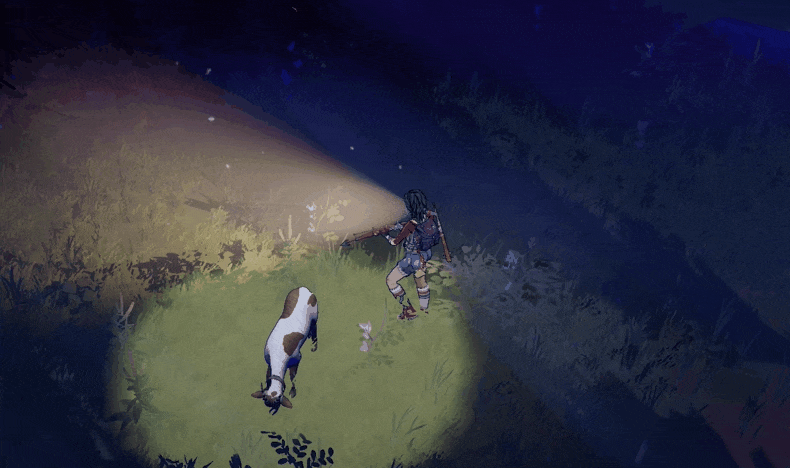 故事开篇,熟悉的恐怖片设定扑面而来:阴暗森林、寂静农场、失踪的同伴、禁忌仪式……玩家扮演的主角艾琳娜,将在这片被诅咒的土地上探寻真相,踏入一场完全未知的恐怖之旅。然而,与传统恐怖作品不同,《怪奇镇生存指南》的恐怖感更多源于氛围塑造,而非简单的Jump Scare。