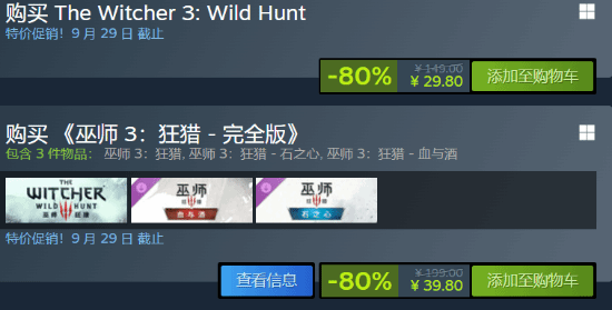 除了《赛博朋克2077》之外,CDPR旗下的另一款人气作品《巫师3》也同样迎来了高额折扣。目前,这款经典的角色扮演游戏在国区的售价仅为29.8元,而包含全部DLC的完整版也仅需39.8元,这样的价格对于想要重温或初次体验《巫师3》魅力的玩家来说,无疑是一个不可多得的好机会。