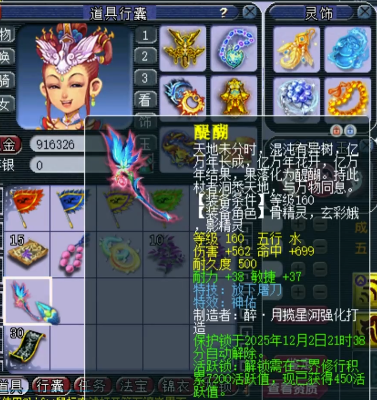 宝哥获得了一件初防147、附加13点耐力的水清衣服。这件装备在市场上价值不菲,预计超过3亿梦幻币,足以看出其珍贵程度。