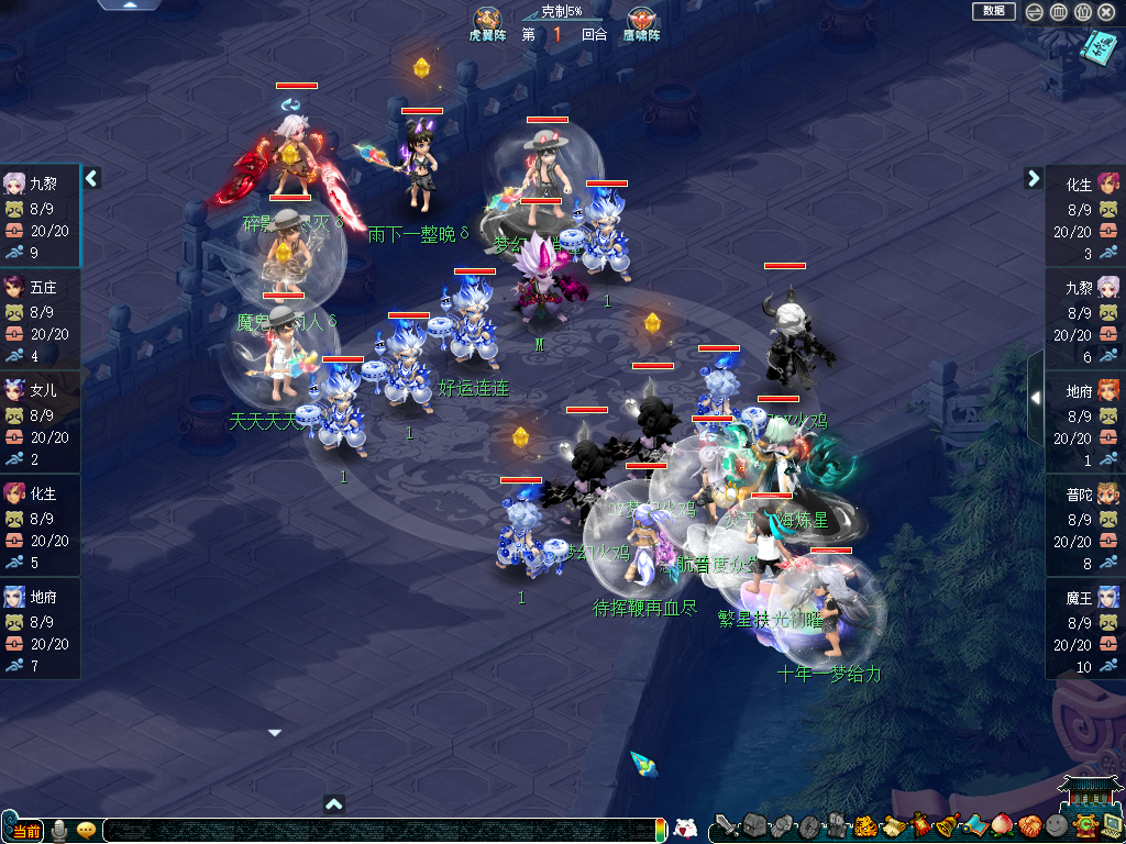积分赛第三轮,夫子庙(观战方)与曲阜孔庙(对战方)狭路相逢。在阵容选择上,夫子庙采用了由“化生、九黎、地府、力普陀、魔王”组成的“三攻”体系,而曲阜孔庙则继续沿用了其擅长的“九黎、五庄、女儿、化生、地府”组成的“四保一”体系。