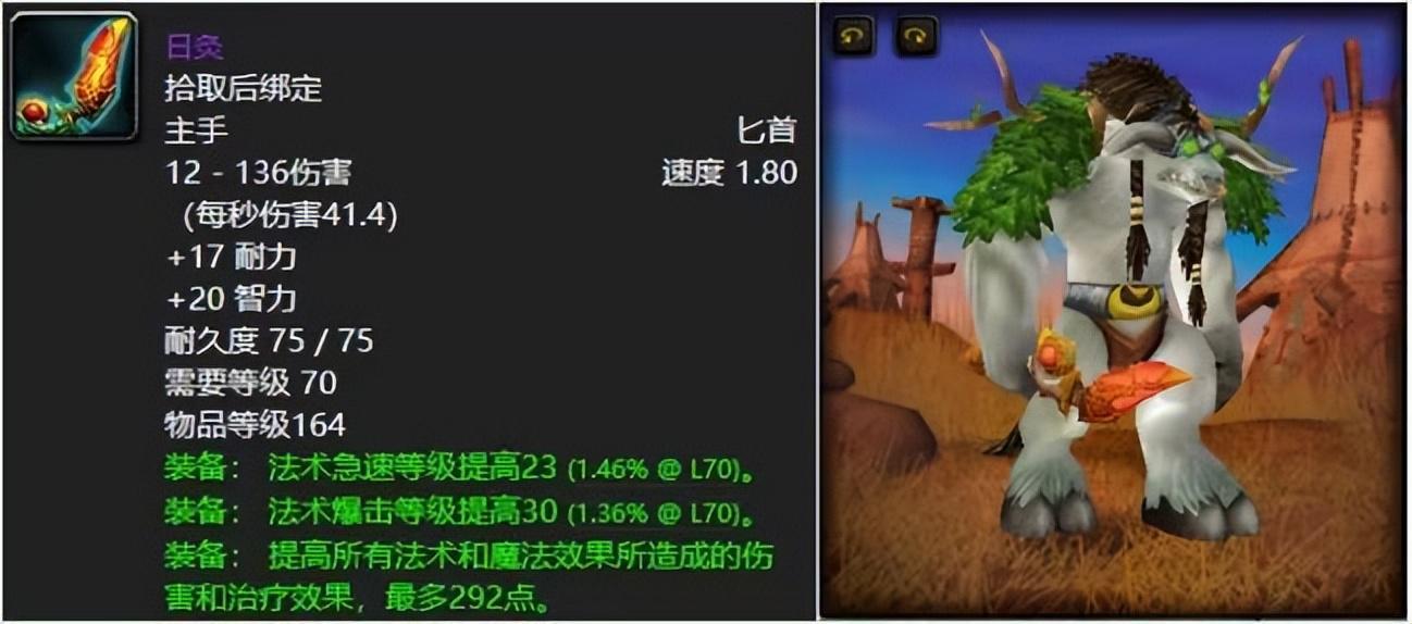 当你有幸击败基尔加丹时,手中的狗仗必然会被日灸所取代。作为版本最强的法系输出匕首,日灸无需任何插槽就能达到巅峰水准。其恐怖的绿字面板让无数法系玩家为之疯狂。搭配布胖的深渊之心,冰法的急速甚至会溢出,寒冰箭的释放速度简直令人惊叹!