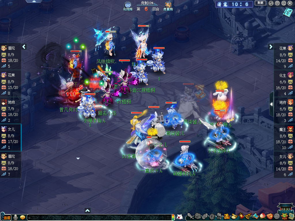 苏堤春晓(观战方):花果山、化生、地府、魔王、力女儿。