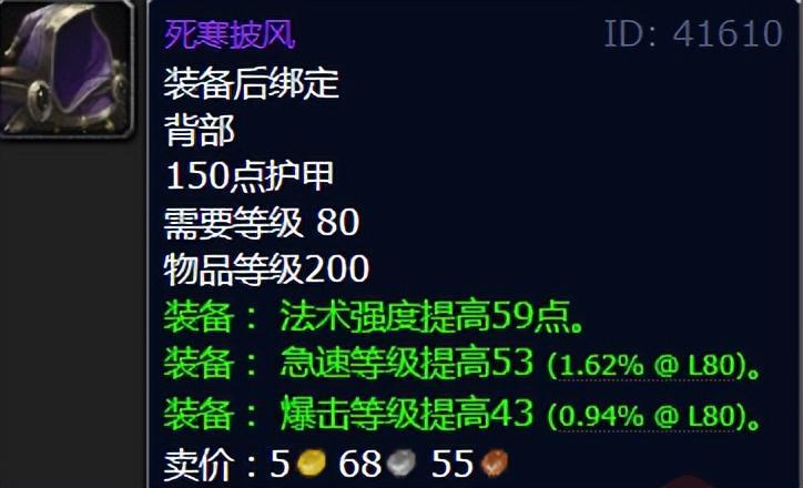 当前魔兽世界泰坦时光服热度持续攀升,服务器排队问题预计月底将得到优化。回归装备推荐,裁缝专业的死寒披风堪称法系输出职业的毕业级选择。虽然缺少插槽设计,但其绿字属性面板已足够恐怖,团本初期完全够用。无论是冰法、火法还是暗牧,这件披风都能提供稳定的法强加成,推荐指数五颗星!