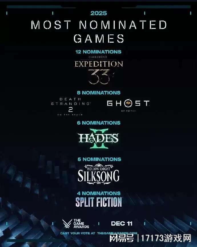 作为游戏界的“奥斯卡”,The Game Awards(TGA)2025年度各大奖项的入围名单终于在11月18日凌晨正式揭晓。