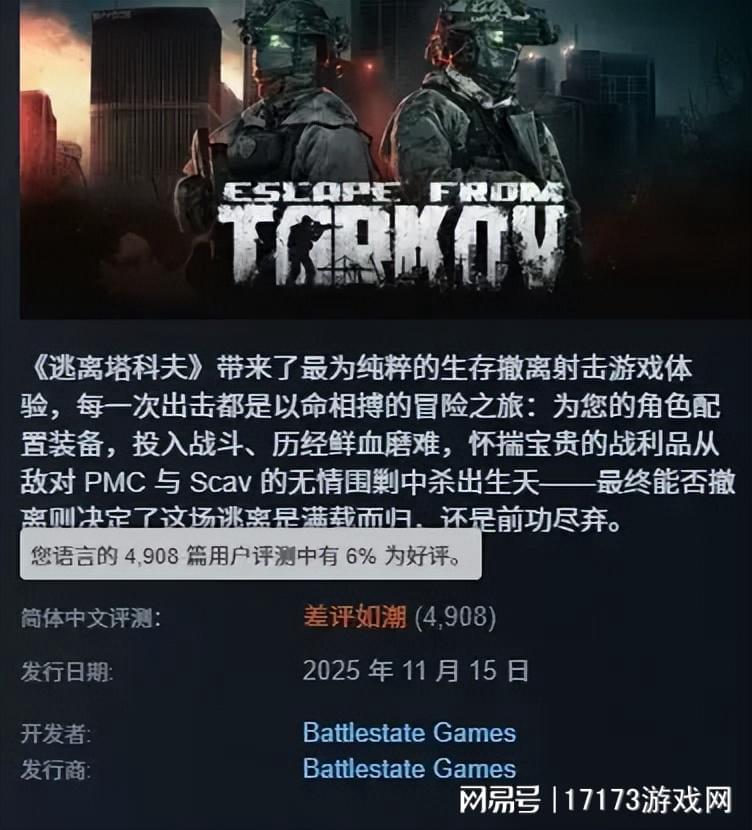 虽然游戏总体评价已经惨不忍睹,但中国玩家对《逃离塔科夫》的要求显然更为严格。根据数据统计,该游戏的简体中文版好评率仅有可怜的个位数,远低于平均水平。