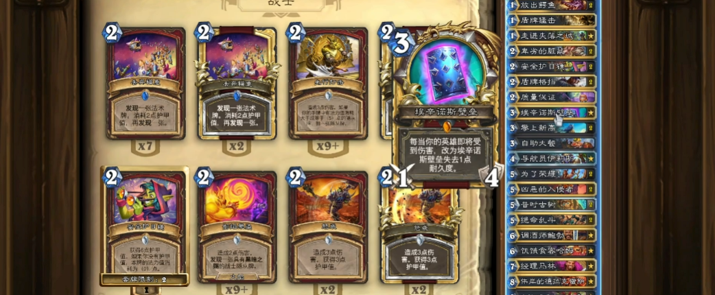 该卡组在对阵猎人时具有先天优势,通过叠甲机制轻松抵挡快攻压力,待完成开门任务后即可实现反杀。但面对萨满的铺场攻势则显得力不从心,场面失控后往往难以翻盘。以下是完整卡组代码: