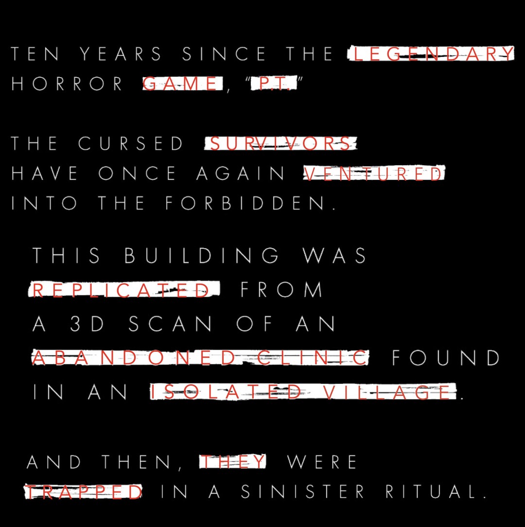 “自传奇恐怖游戏《P.T.》已过十年。被诅咒的幸存者们再次冒险进入了禁忌之地。”