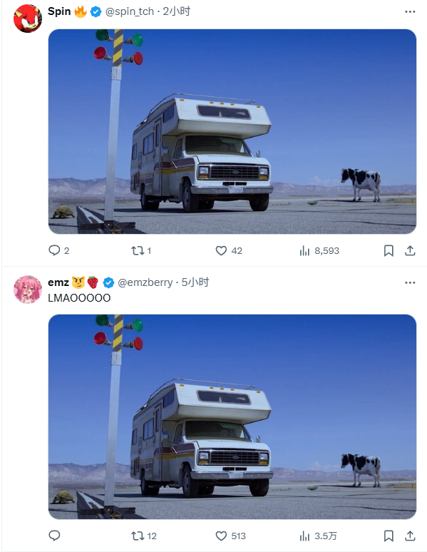 这张引发刷屏的图片内容颇具深意,图中包含一辆破旧房车、一只乌龟和一头奶牛。这些元素被网友们认为是对《马里奥赛车:世界》的巧妙影射。其中,房车象征着游戏的开放式自由探索地图,乌龟可能暗指因赛道较宽广而被部分玩家认为“速度感下降”的现象,同时也有可能对应系列中常见的绿色龟壳道具。而奶牛则对应于游戏中新登场的“奶牛赛车手”,其设计灵感据说源于以往赛道中的NPC奶牛。